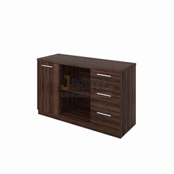 Фасады кабинета руководителя FORT демонстрируют благородный оттенки, имитирующие спил натурального дерева. Минималистичные формы и простые конструкции легко вписываются в современный интерьер офиса. Использование в шкафах свободных ниш и стеклянных дверок добавляет в пространство света. Шахматный рисунок на фасадах мебели позволяет избежать монотонности обстановки, добавляя в обыденность изящной оригинальности. Фурнитура цвета «металлик» является элегантным дополнением общей стилистики ансамбля.